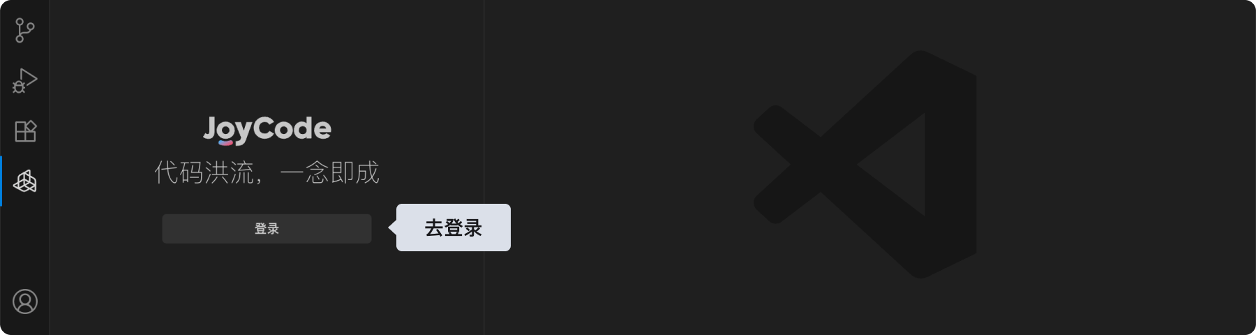 在左侧导航栏中,点击 JoyCode 图标打开对话框,或使用快捷键(Windows: Ctrl + U; MacOS: Command + U)